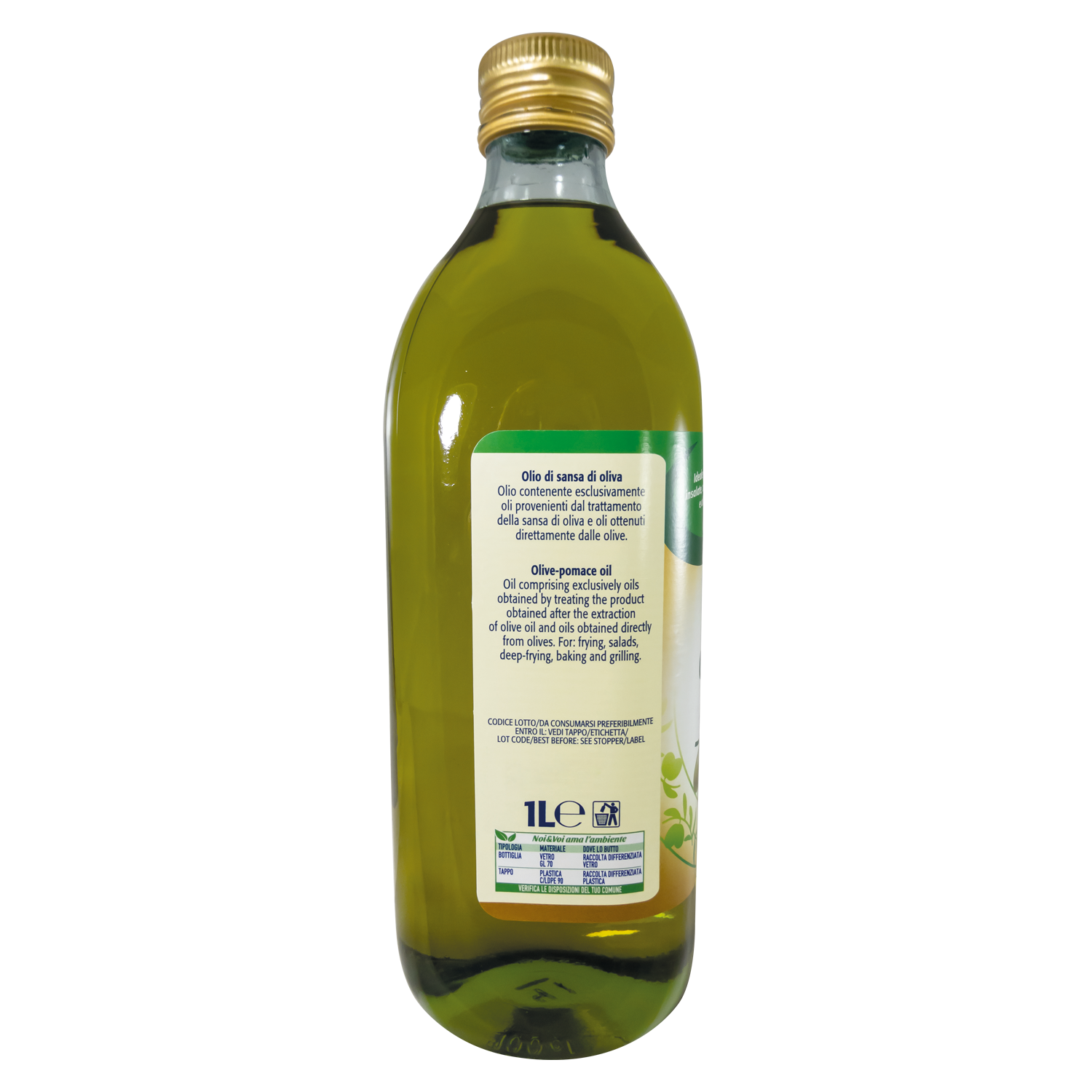 Ingredienti | Olio contenente esclusivamente oli provenienti dal trattamento della sansa di oliva e oli ottenuti direttamente dalle olive. |
