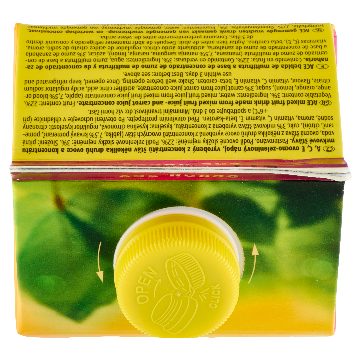ACE bevanda multivitaminica di più frutti e succo di carota. Frutta: 27%. Verdure: 3% | |