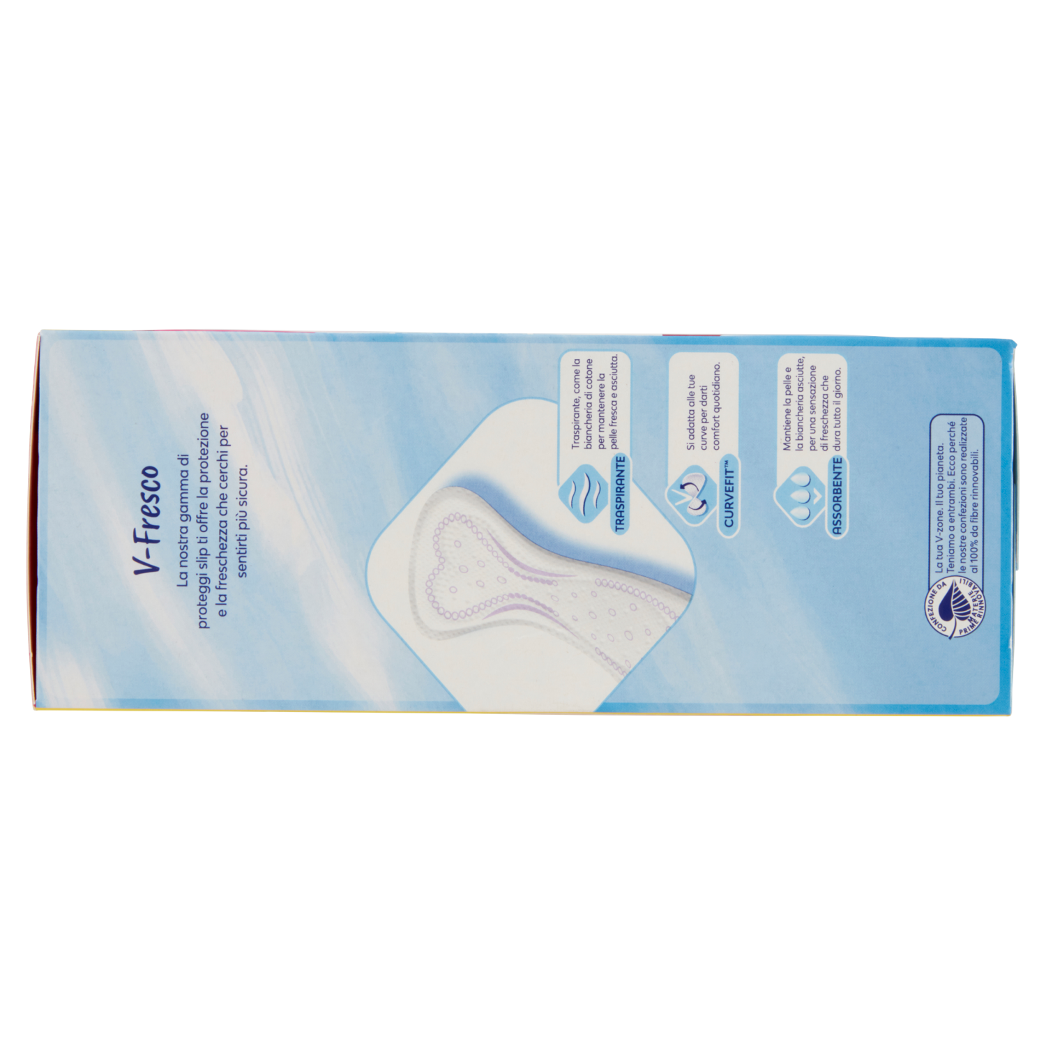 V-Fresca & Protetta La forma, il colore, l'odore della tua V-Zone...tutto è unico di te. Qualsiasi tipo di protezione preferisci o livello di freschezza, noi abbiamo il proteggi slip più adatto a te. La tua V-Zone (che non è solo la tua vagina o vulva!) è unica ed è importante prendersene cura nel modo giusto ogni giorno. Cour-V - Massima adattabilità - Una tecnologia unica, che davvero si adatta all'unicità delle tue forme, così da offrirti massimo comfort e protezione per tutta la giornata. Super assorbente - Neutralizza gli odori - I nostri proteggi slip sono sottili e super assorbenti. Assorbono istantaneamente i fluidi e gli odori, e sono traspiranti per mantenere la tua V-Zone fresca. Testato dermatologicamente | |