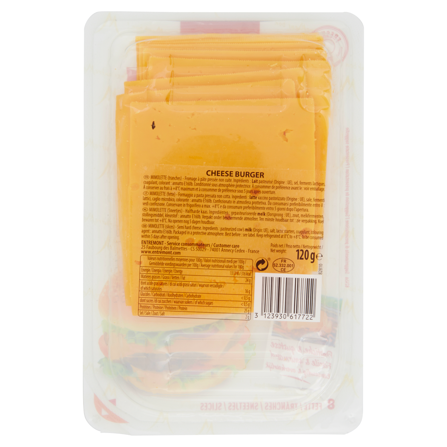 Prodotto | EntreMont Cheese Burger 8 Fette 120 g |